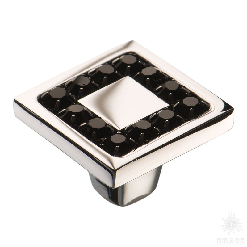 Длина, мм: 30; Ширина, мм: 30; Высота, мм: 22; Цвет покрытия: Хром; Тип отделки: Глянцевая; Вставка: Кристаллы; Цвет вставки: Чёрный; Материал: Латунь; Стиль: Глэм; Производитель: Турция