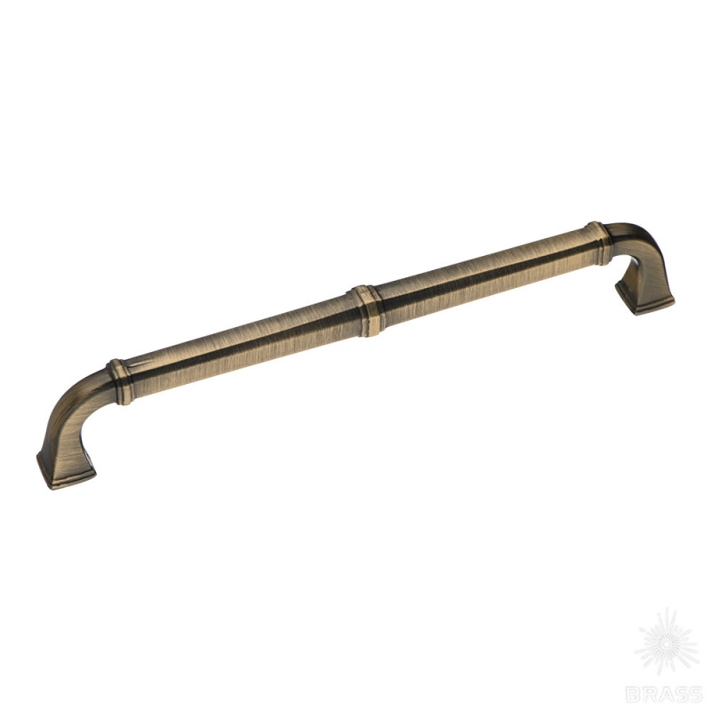 Длина, мм: 208; Ширина, мм: 16; Высота, мм: 36; Межосевое расстояние, мм:: 192; Цвет покрытия: Латунь; Тип отделки: Состаренная; Материал: Цамак; Стиль: Арт-деко; Производитель: Турция
