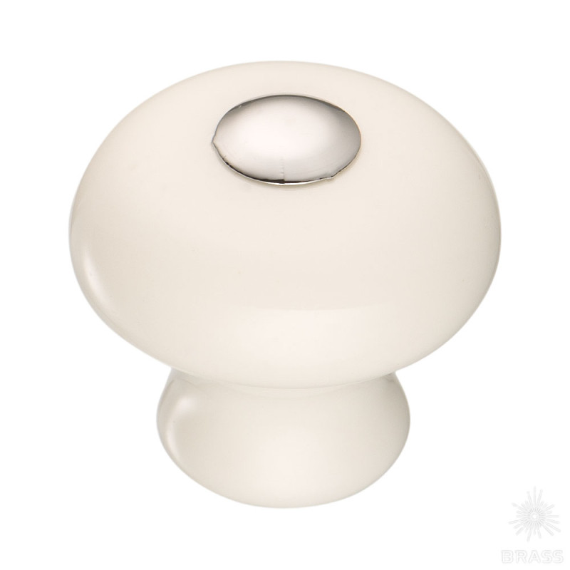 Ручка кнопка керамика с металлом, белый/глянцевый хром