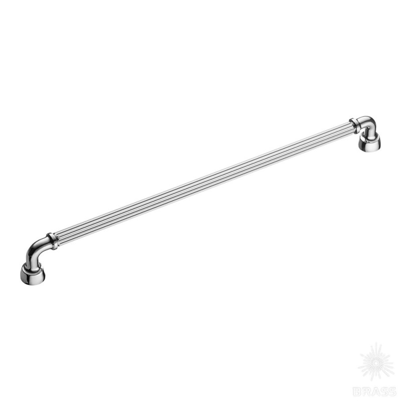 Длина, мм: 340; Ширина, мм: 20; Высота, мм: 38; Межосевое расстояние, мм:: 320; Цвет покрытия: Хром; Тип отделки: Глянцевая; Материал: Цамак; Стиль: Арт-деко; Производитель: Турция
